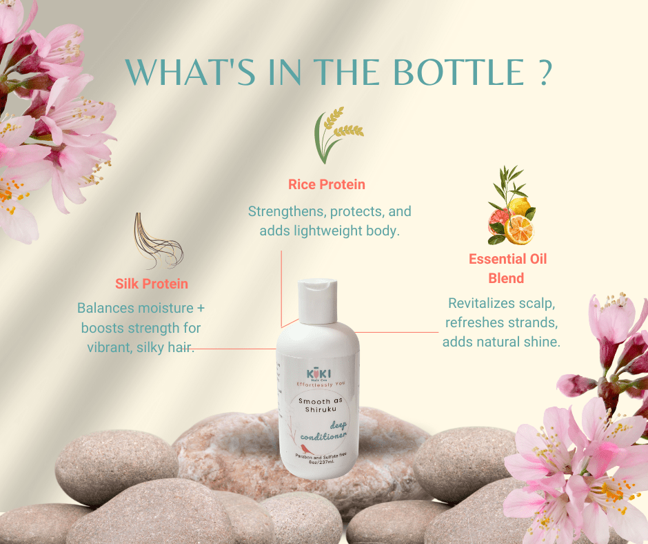 Named after the Japanese word “Shiruku,” meaning “silk,” Smooth as Shiruku is your go-to deep conditioning shampoo for hair that craves softness, strength, and shine. Powered by plant-based ingredients and a gentle cleansing system, this multitasking formula cleans, detangles, deeply moisturizes, and strengthens in one nourishing step.