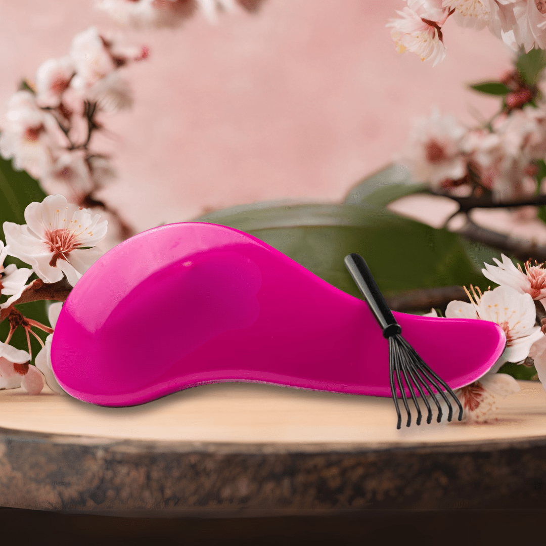 Various length bristles makes it easier to detangle long hair or knotted hair. Does not hurt or pull hair to run through tangled hair. Comes with a rake to pull out hair left in the comb. Available in Black or Pink